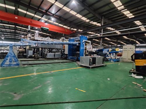 一、系統(tǒng)機(jī)組技術(shù)參數(shù)Ⅰ、機(jī)器顏色:主機(jī)為:公司標(biāo)色;電柜為:電腦色;防護(hù)罩:黃色Ⅱ、擠出工藝:110升混煉機(jī)-——自動(dòng)提升機(jī)——強(qiáng)制喂料機(jī)——150單螺桿擠出機(jī)——液壓板式換網(wǎng)系統(tǒng)-----片材擠出模具----三輥壓光---三輥冷卻系統(tǒng)-----下覆膜裝置----托架冷卻-----冷卻牽引----切邊裝置-----計(jì)米器-----在線剪板機(jī)----輸送帶-----摩擦收卷機(jī)----主機(jī)采用:PLC控制Ⅲ、加工物料:EVA.EPDM.POE隔音氈 敲擊隔音片代加工 要 求:制品寬度:1000mm 敲擊隔音片代加工制品厚度:1-4mm產(chǎn) 能:700~1000公斤/小時(shí)注意事項(xiàng):取決于客戶的配方、工藝、